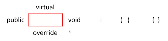 virtual : 메소드, 속성, 인덱스 또는 이벤트 선언을 수정하고 파생 클래스에서 재정의하도록 허용하는 데 사용