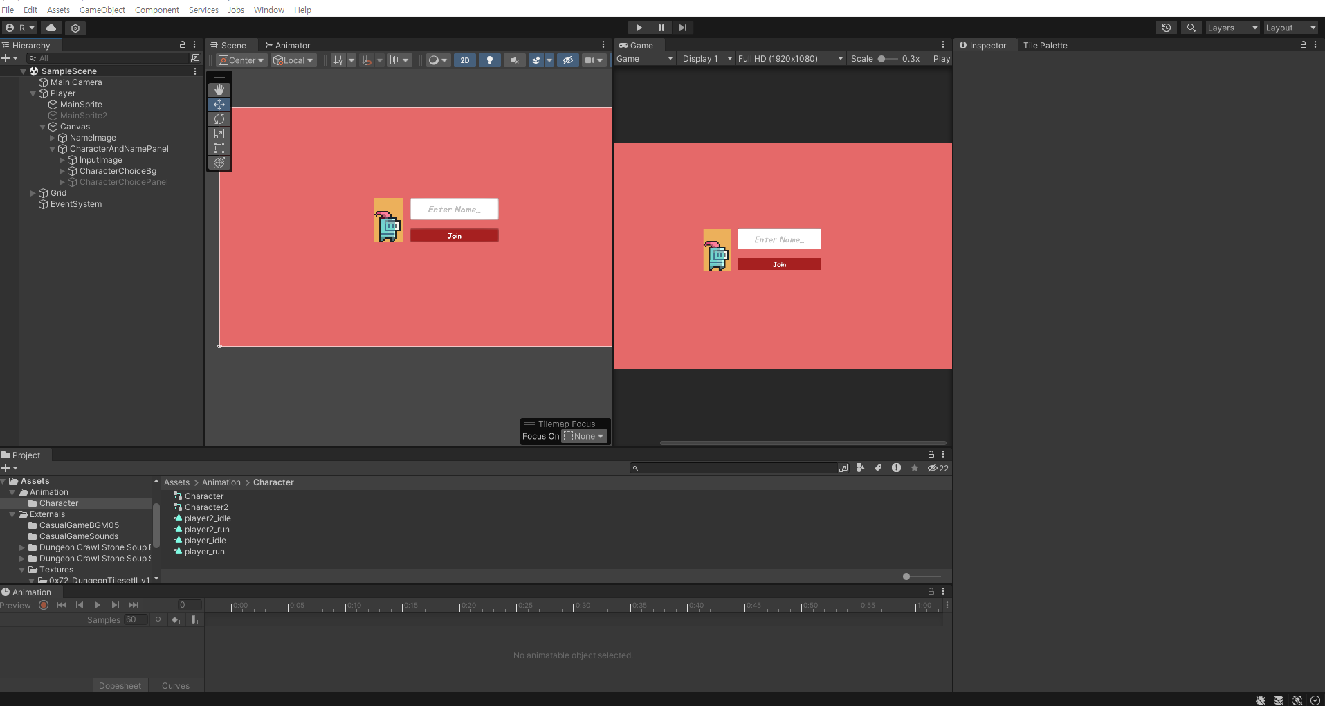 애니메이션 같은 경우에도 강의를 다시 보면서 따라 만들었고, 이름 입력 시스템은 저번 주에 했던 C# 팀 프로젝트 과제 중 이름 입력 시스템을 응용하는 건가 생각했다가 아닌 것 같아서 검색을 통해 Input Field로 해결했습니다. 직업 선택 기능은 메인 스프라이트를 하나 더 만들고 캐릭터 선택 창 또한 비슷하게 만든 뒤 버튼을 이용해서 SetActive를 조절하는 방식으로 해결을 했지만... 여기서 요구하는 방식이 이게 아닌 것 같은 느낌이 많이 들었습니다. 그래도 일단은 요구사항대로 어떻게든 구현을 했기 때문에 뭔가 뿌듯한 느낌도 들었습니다. 선택 요구 사항은 9시 이후에 조금 도전해 보고 안되면 지금까지 구현했던 것들을 정리하고 다시 한번 이해하는 시간을 가져야겠습니다. 또한 GitHub에 있는 ReadMe도 간단하게 정리를 해야겠네요.