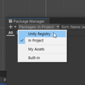 (2) Input System 검색 및 설치 : Packages를 Unity Registry로 변경 후, 검색 창에 "Input System"을 입력하고 패키지를 설치한다.