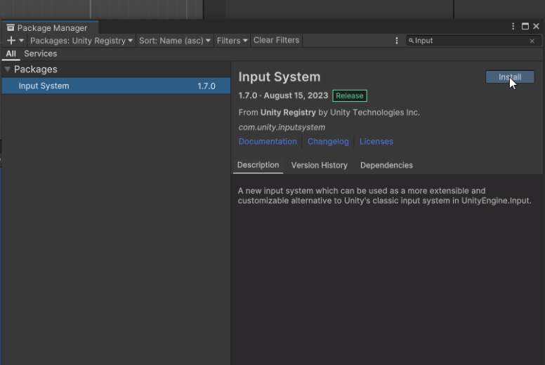 - 유니티 에디터의 패키지 매니저를 통해 Input System 패키지를 설치한다.