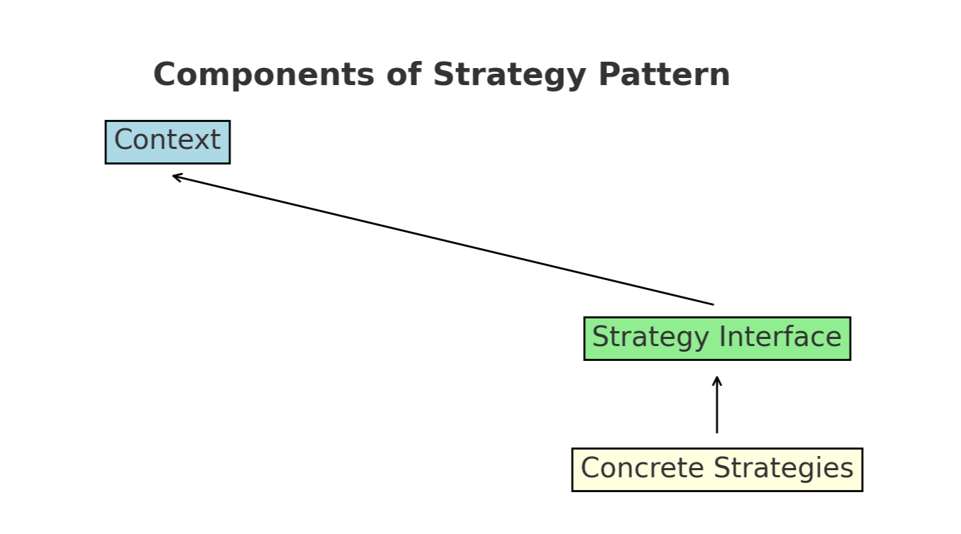 2. 구체적인 전략 클래스(Concrete Strategy) : 인터페이스를 구현한 여러 알고리즘 클래스들입니다. 각 클래스는 특정 알고리즘을 구현한다.