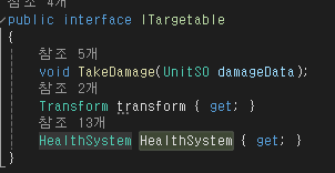 저녁을 먹은 뒤에는 지금까지 했던 캐릭터 로직을 몬스터에도 적용시키는 작업을 했습니다. 비슷한 코드의 내용이 많았기 때문에 금방 작업을 완료했고, Projectile의 경우에는 ITargetable을 사용하여 몬스터와 캐릭터 모두 사용할 수 있게 만들었습니다. 그다음에는 팀원분들이랑 작업한 내용을 공유했고, 여러 가지 이야기를 하면서 오늘 하루를 마무리했습니다.