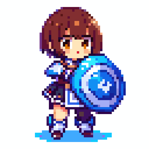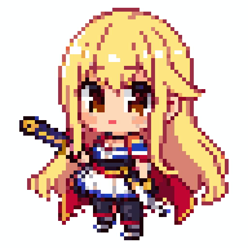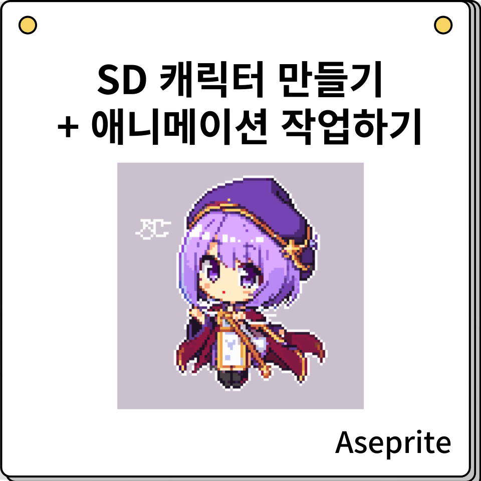 이런 식으로 귀여운 SD 캐릭터가 완성이 됩니다. PixelLab의 애니메이션을 이용하기 위해서는 64픽셀 한정이기 때문에 일단 64픽셀로 나오게끔 만들었고, 일단 이 캐릭터로 Idle 애니메이션을 만들어보았습니다.
