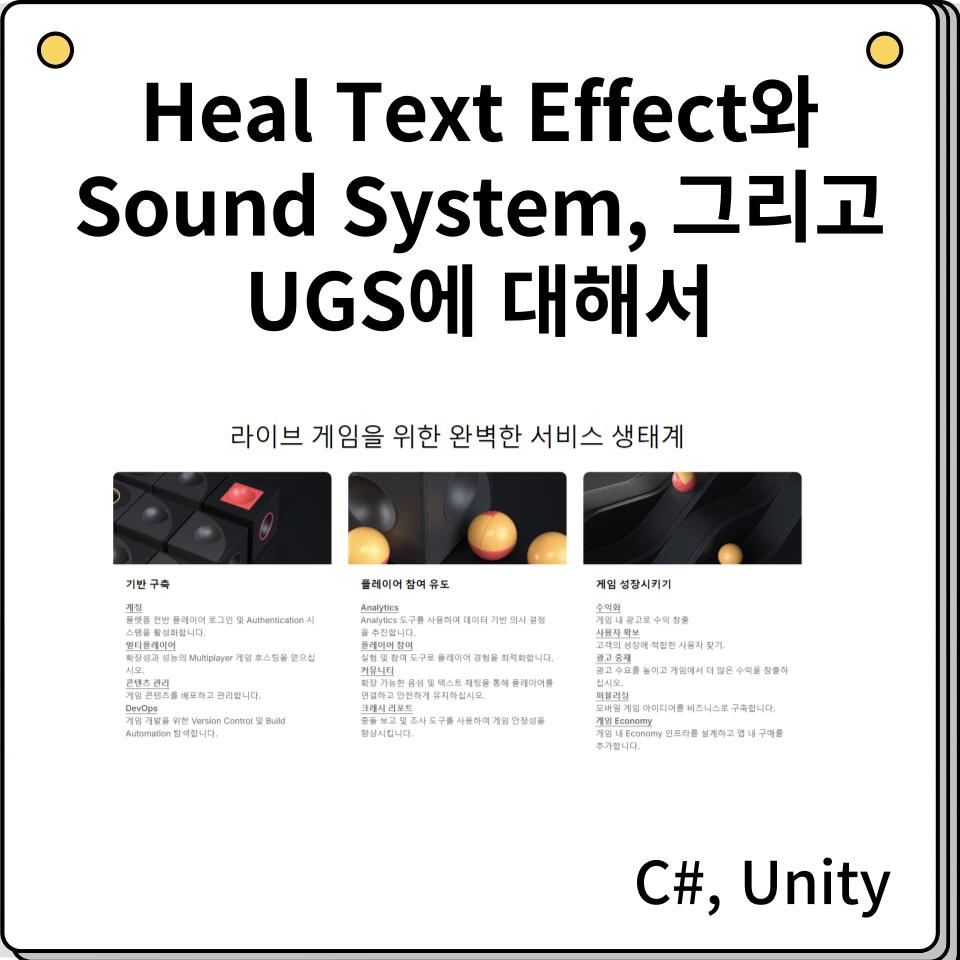 사운드 시스템 구축이 얼추 끝나고나서, 저는 저장과 불러오기 기능을 위해 UGS 기능을 알아보았는데, 처음에는 유니티 구글 시트가 나와서 뭔가 했더니(약자가 똑같음)... Unity Gaming Services의 약자로 유니티에서 제공해 주는 계정 관리, 플레이어 정보 관리, 게임 정보 관리, 멀티 플레이어, 콘텐츠 관리 등등 여러 가지로 제공해 주는 툴셋이였습니다. 어떻게 사용하는지에 대해서 많이 나와 있지 않아서 유튜브나 구글에서 찾아본 결과 설명하는 내용은 있어도 어떻게 사용하는지에 대해서는 찾기가 어렵더군요.