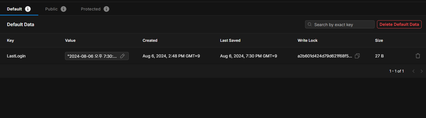 위의 코드대로 한다면 처음에 입력한 정보를 회원가입을 통해서 이미지에 있는 Player ID 값이 생기게 되고, 저장과 불러오기를 통해서 Default 데이터에 해당 정보의 키와 값을 통한 데이터가 저장됩니다. 아마도 이 저장과 불러오기 기능을 게임 매니저에서 활용하여 게임에 필요한 모든 정보를 담은 함수를 만든 다음에, 게임 종료나 멈췄을 때, 저장되는 함수를 불러오고, 로그인할 때 불러오기 함수를 불러오면 해당 계정에 대한 정보들이 저장된 데이터를 불러오는 것도 되지 않을까 생각이 듭니다. 일단 이 부분은 다른 팀원분들이 맡으신 부분이 완성이 돼야 저도 진행이 가능하기 때문에 여기까지만 작성하고, 팀원분들에게 공유해 드린 다음에, 저는 TIL을 쓰면서 오늘 하루를 마무리했습니다.