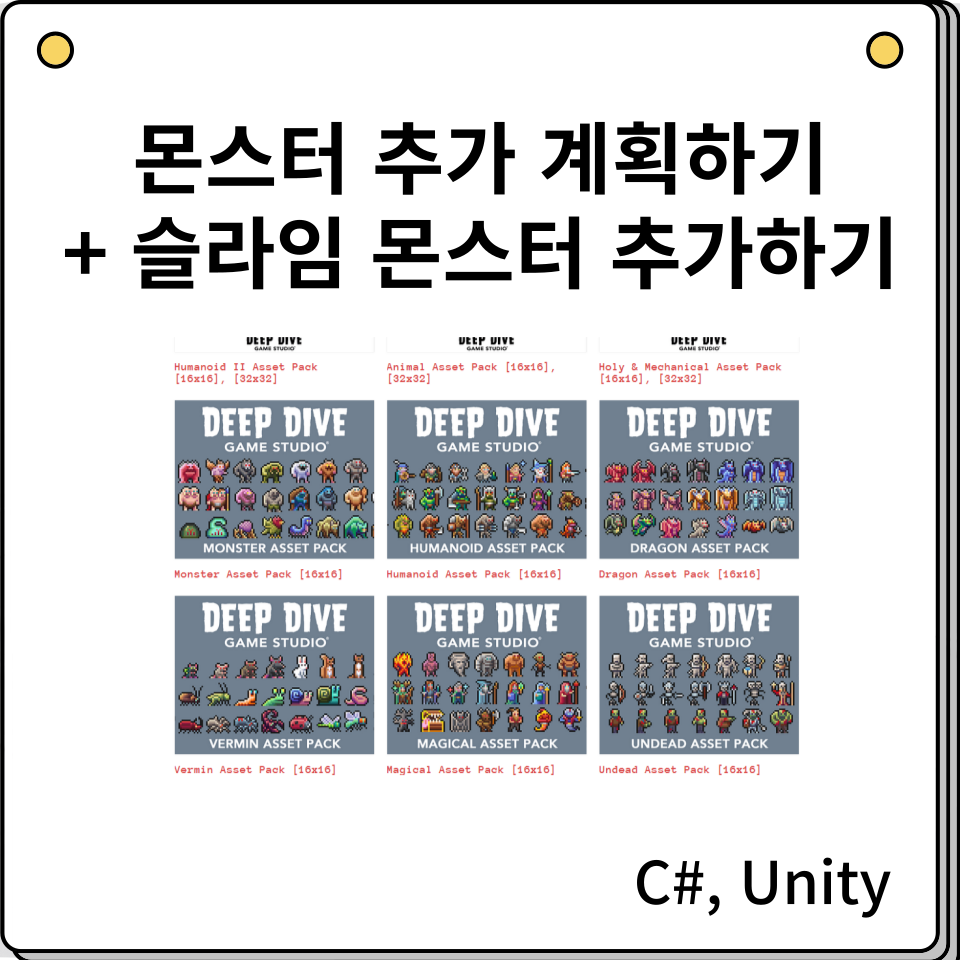 What I did today : 몬스터 추가 계획하기 + 슬라임 몬스터 추가하기