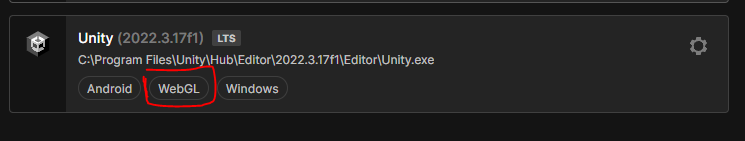 WebGL 대해서 잘 모르니까 일단 빌드를 해보려고 Unity에서 WebGL 빌드를 어떻게 하는지 찾아보았고, 해당 모듈이 유니티 프로젝트에 있어야 빌드를 할 수 있었습니다. 지금은 다운로드를 한 상태기 때문에 있지만, 없다면 오른쪽 톱니바퀴 모양에서 WebGL 모듈을 다운로드할 수 있었습니다.
